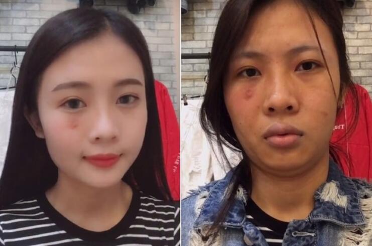 长期素颜的人就算是没有化妆品的修饰肤色也是健康的,可是长期化妆的女生就会明显不同了,卸妆后明显的肤色差就会显现出来了,皮肤松弛暗黄无光泽,肤色不均等问题都会出现。